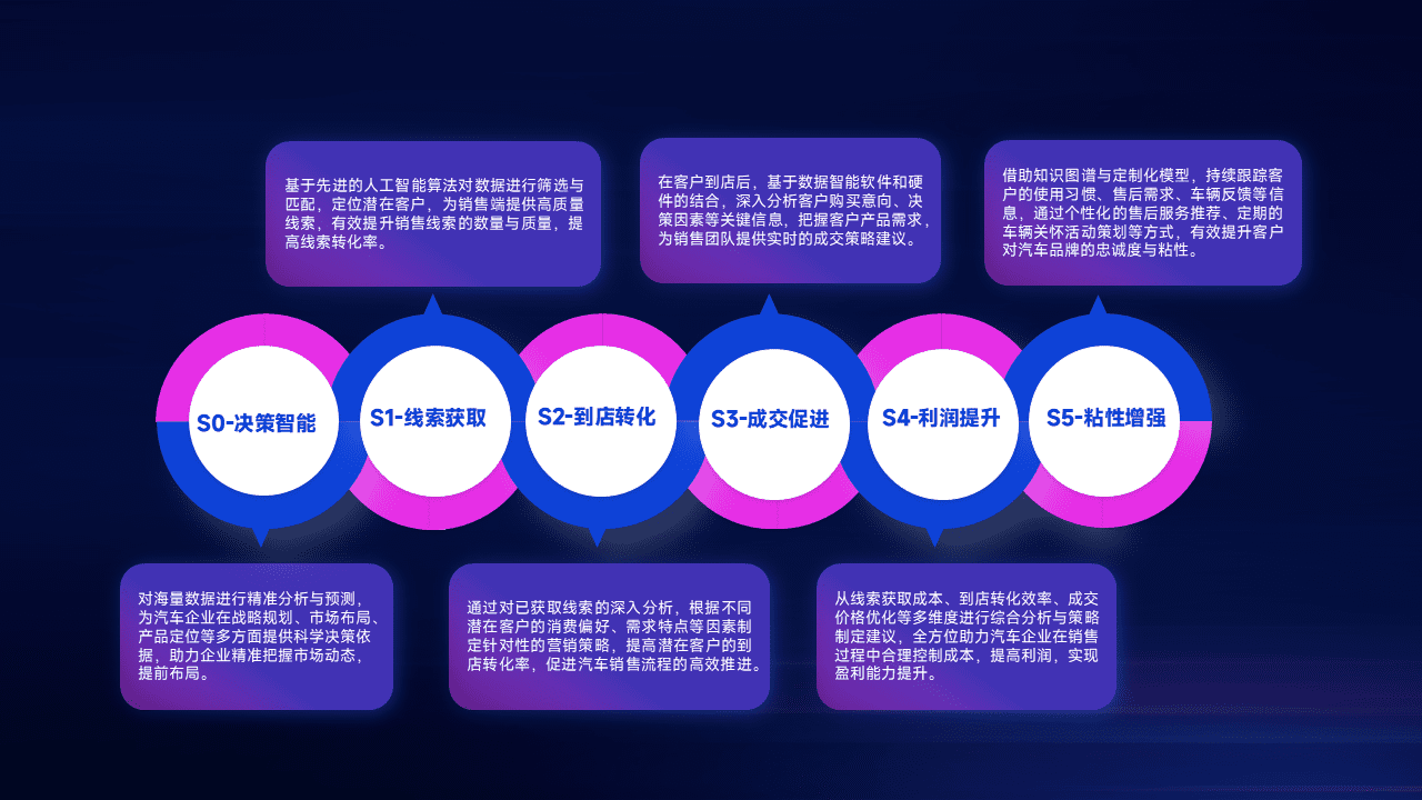 通过拓宽潜在客户来源、、、、优化线索分配并提高到店转化率,,,,以增强销售效率。。。同时,,利用线索数据不断优化分析模型,,有效提升转化率,,扩大营销影响力。。。。